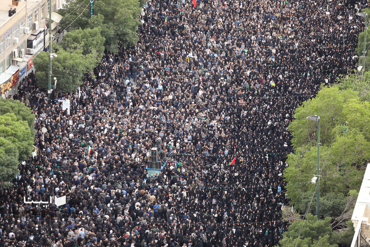 سیل جمعیت میلیونی تشییع کنندگان پیکر رییس جمهور شهید در مسیر مشایعت به خانه ابدی‌اش در حرم مطهر امام رضا (ع) به حدی است که خودرو حامل پیکر آیت الله رییسی بارها مجبور به توقف شد و مسیر را با کندی حرکت کرد.