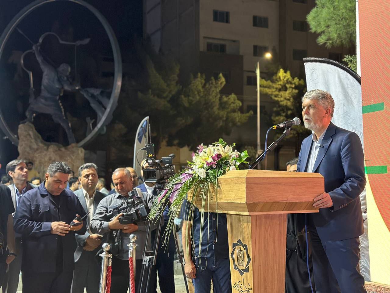 او با ابراز خرسندی از رونمایی این مجسمه گفت: خیلی خوشحالم که در کرمان مجسمه آرش کمانگیر، تهمینه و سهراب دارید و گفتند قرار است مجسمه سیمرغ را نیز بزودی بسازند که جای مسرت است.