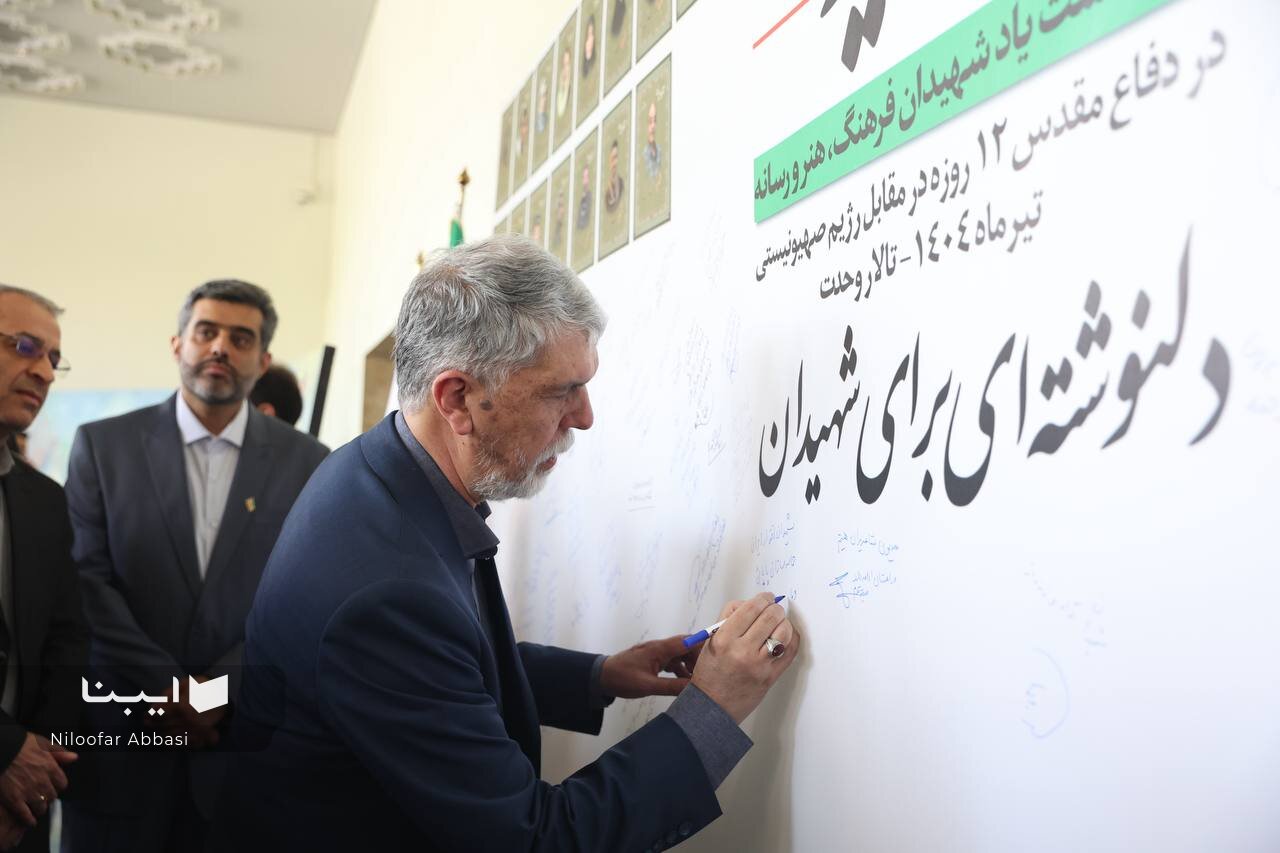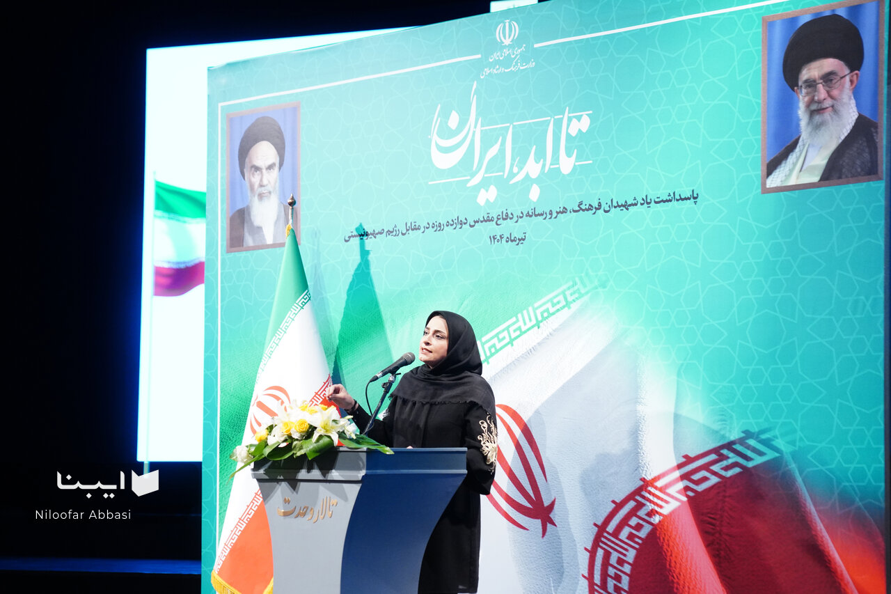 ویژهبرنامه «تا ابد، ایران» با هدف پاسداشت شهیدان فرهنگ، هنر و رسانه، صبح امروز (سهشنبه ۳۱ تیر) با حضور مسعود پزشکیان رئیس جمهور، سید عباس صالحی وزیر فرهنگ و ارشاد اسلامی و جمعی از اصحاب فرهنگ و هنر در تالار وحدت برگزار شد. /عکاس:نیلوفر عباسی