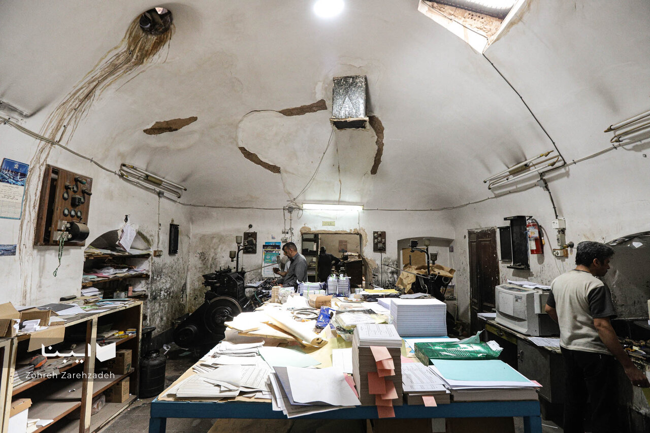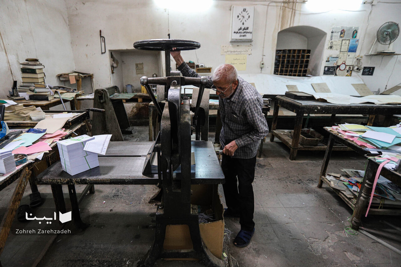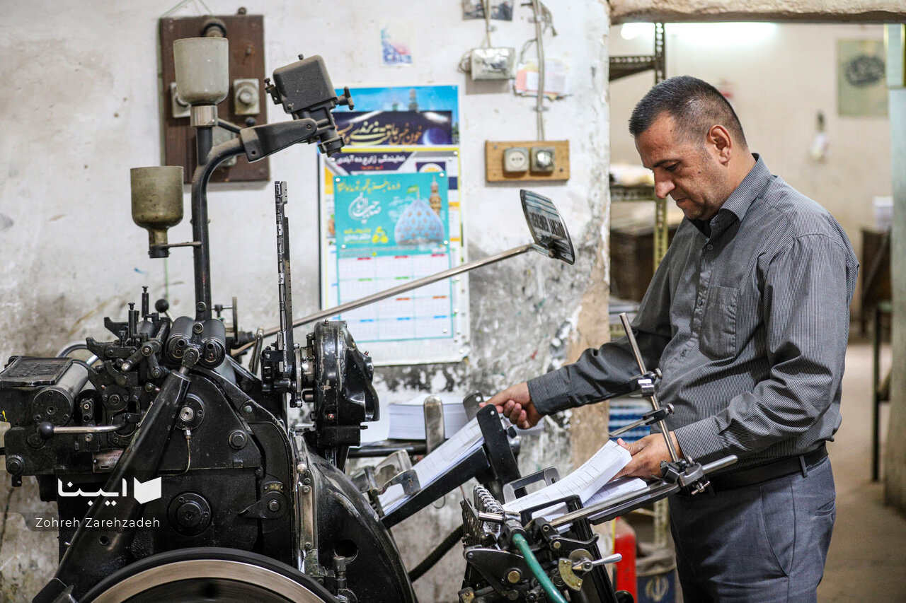 چاپخانه گلبهار در کوچهای بنبست به همین نام، نزدیک میدان امیرچخماق یزد قرار دارد؛ فضایی قدیمی با دستگاههای لیتوگرافی سنتی که هنوز فعال است. در حالیکه بیشتر چاپخانهها جای خود را به تکنولوژیهای دیجیتال دادهاند، گلبهار همچنان با بوی مرکب و صدای دستگاههای قدیمیاش یادآور دوران طلایی چاپ در یزد است. /عکاس:زهره زارع زاده