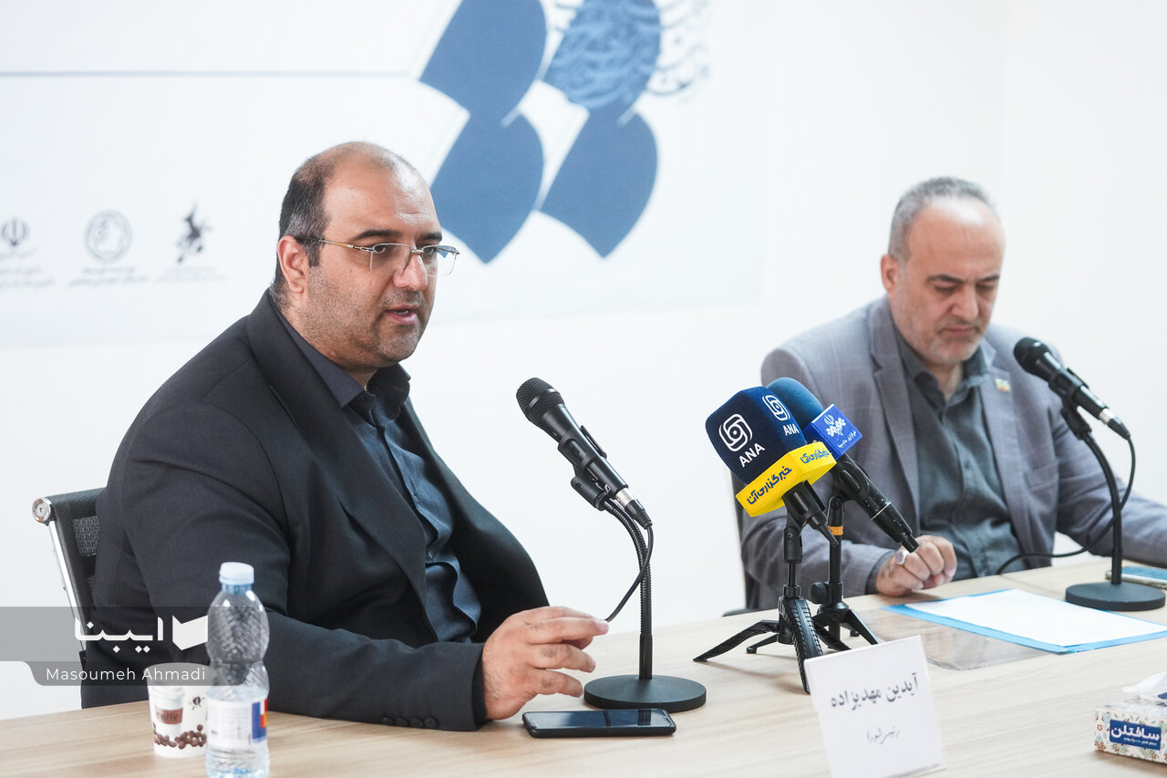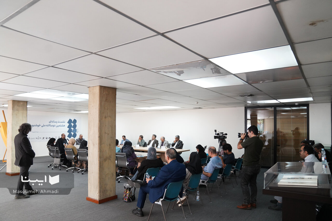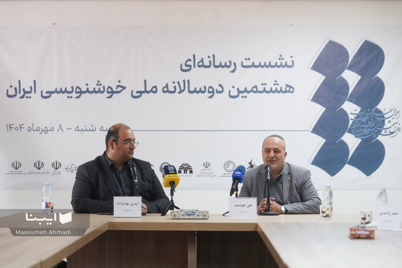 نشست رسانهای هشتمین دوسالانه ملی خوشنویسی ایران با حضور آیدین مهدیزاده؛ مدیرکل هنرهای تجسمی و رئیس شورا و علی هوشمند، مدیر فرهنگ و ارشاد استان قزوین و دبیر شورای سیاستگذاری این دوسالانه صبح سهشنبه ۸ مهرماه در موزه هنرهای معاصر برگزار شد. /عکاس:معصومه احمدی