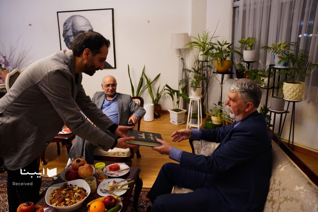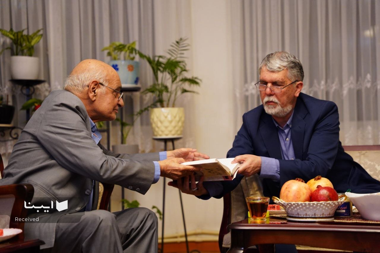 ️سیدعباس صالحی وزیر فرهنگ به همراه نیکنام حسینی‌پور مشاور وزیر و رئیس مرکز روابط‌عمومی و اطلاع‌رسانی وزارت فرهنگ همزمان با شب یلدا به دیدار استاد هوشنگ مرادی کرمانی رفتند.