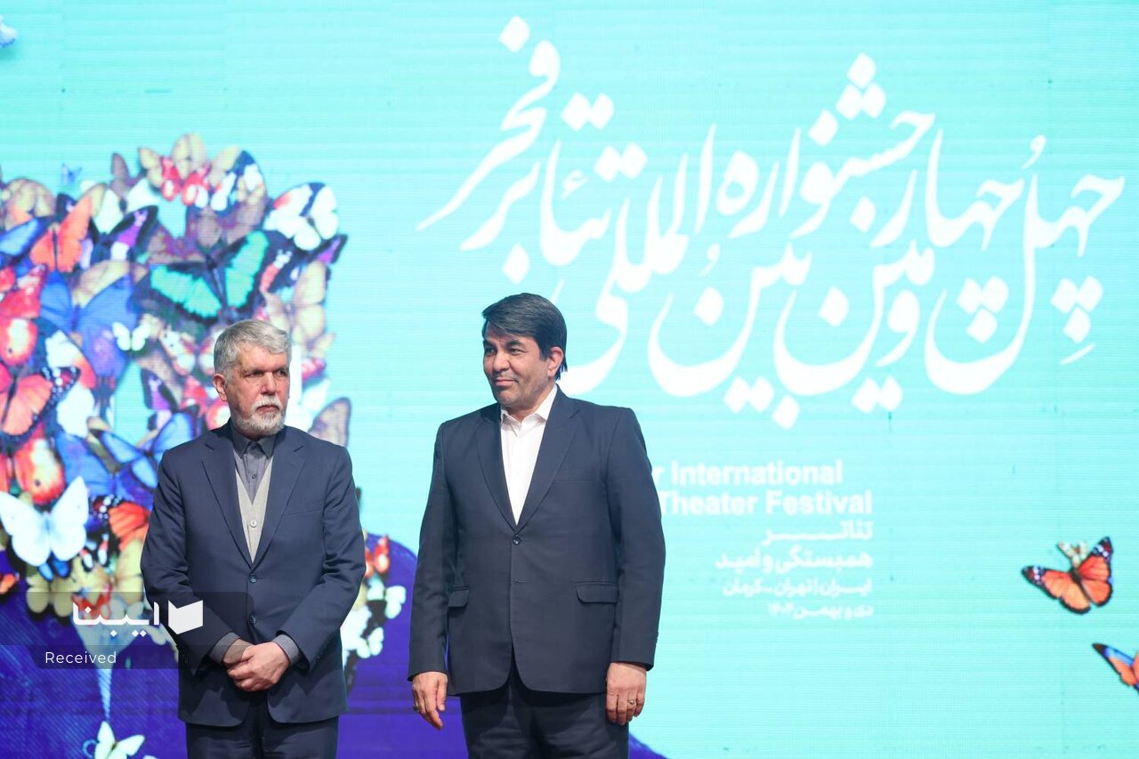 آیین افتتاحیه چهل و چهارمین جشنواره بینالمللی تئاتر فجر شامگاه شنبه ( ۲۷ دی ۱۴۰۴ ) با حضور سید عباس صالحی وزیر فرهنگ و ارشاد اسلامی، استاندار کرمان و جمعی از هنرمندان در تالار فرهنگ و هنر کرمان برگزار شد.